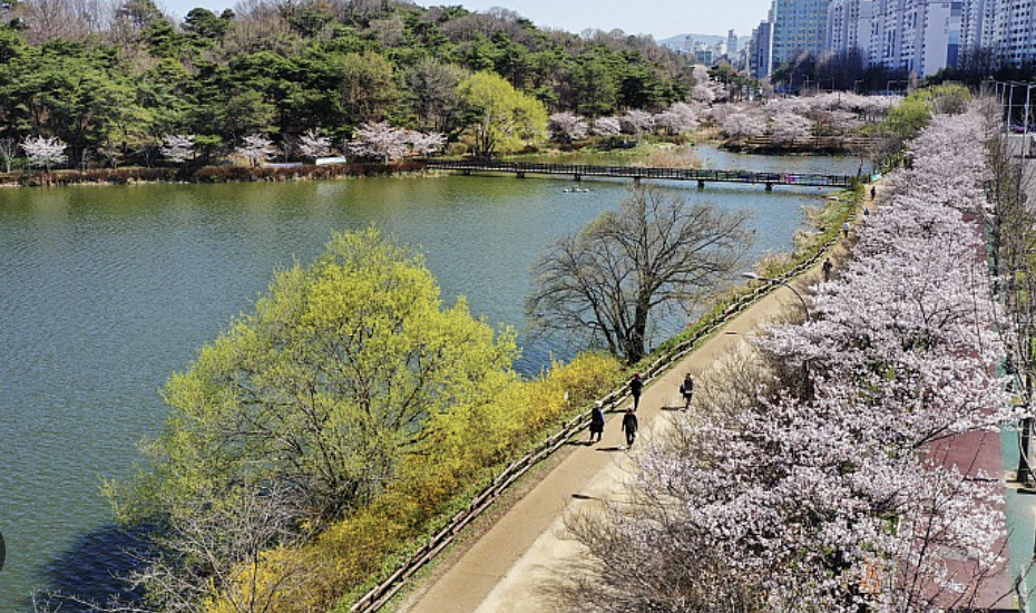 광주는 남부지방 중에서도 벚꽃 명소가 잘 알려진 도시입니다. 중외공원은 가족 단위 나들이 장소로 인기며, 풍암호수공원은 자전거 도로를 따라 흐드러진 벚꽃을 즐길 수 있어 시민들의 사랑을 받습니다.