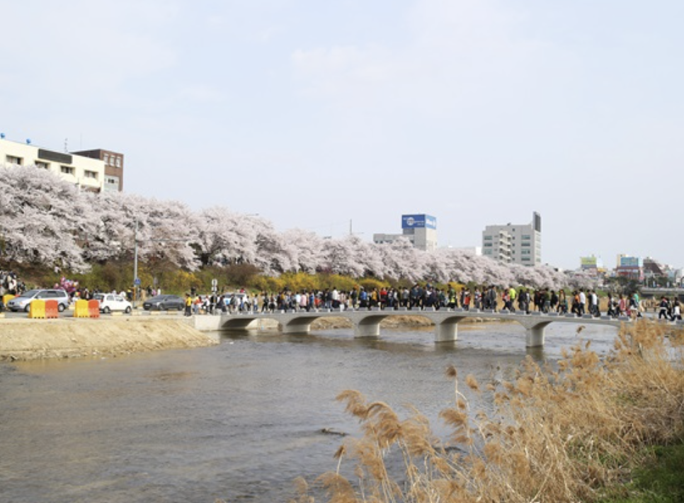 청주는 무심천 벚꽃길이 가장 대표적인 벚꽃 명소입니다. 상당공원과 청남대 등도 벚꽃이 아름답기로 유명하며, 도심에서 쉽게 접근 가능한 곳이 많아 편리함도 큰 장점입니다.