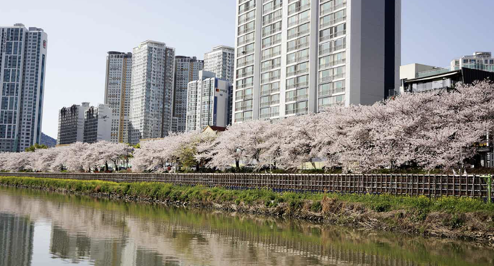 부산은 따뜻한 남쪽 바닷바람 덕분에 비교적 이른 시기에 벚꽃을 만날 수 있는 지역입니다. 대표적인 명소로는 온천천 벚꽃길과 달맞이길이 있으며, 광안리해수욕장 근처나 황령산 벚꽃길도 유명합니다. 벚꽃과 바다를 동시에 즐길 수 있는 부산 특유의 매력이 돋보입니다.